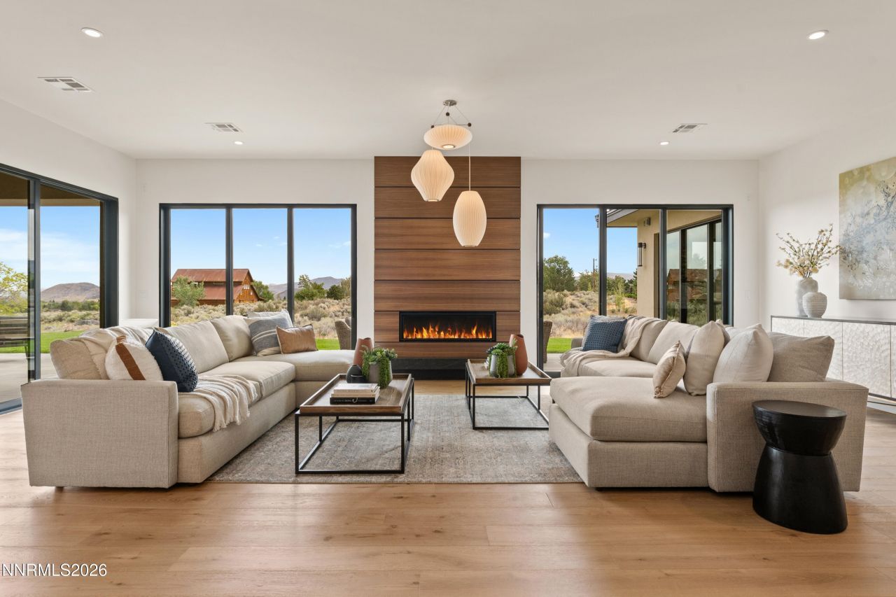 Welcome to 10 Glenhaven Drive, the first completed residence at Glenhaven, Reno's newest custom home community. This 4,512-sqft, 4-bedroom home set on nearly 3 acres harmoniously combines modern design with a peaceful setting in a highly sought-after location. Starting from the outside in, this contemporary residence incorporates high-quality materials and elevated design. Natural sandstone cladding, metal roofing, and cedar accents combine for a striking exterior that sets an upscale tone for what's to come, inside. Sunlight pours in through the glass entryway with 12-foot ceilings to create an airy and expansive ambiance that is continued by the white oak flooring and 10-foot ceilings found throughout the rest of the home. The home is centered around the open living and kitchen area, featuring custom walnut cabinetry by a local craftsman, natural quartzite counters, and premium Wolf, Bosch, and Sub-Zero appliances. A separate butler's pantry with sink and dishwasher provides additional functionality and storage. Entertaining family and friends will be a privilege for guests and the host alike in the spacious dining area offset by a stylish dry bar equipped with a full-height wine cooler and ice machine. Designer pendant lighting and a 60 gas fireplace with custom walnut paneling bring elegance and artistry to the Great Room, while three sets of sliding glass doors open to a large patio for seamless indoor-outdoor flow. The primary suite is a tranquil haven with captivating views and direct patio access, allowing nature to become a source of calm and reflection. The spa-like bath is a private retreat featuring a tiled shower, soaking tub, custom vanity, designer lighting, and bespoke mirrors. The lavishness continues in the massive primary closet, outfitted with built-in storage, chandelier, and LG Styler steam cabinet for added convenience. Each of the home's secondary bedrooms includes generous closet space and a private ensuite bathroom with custom vanity, natural stone countertop, and decorative lighting. The sun-splashed office, which can alternatively serve as a bedroom, is an inspiring workspace with oversized windows that frame direct views of Mt Rose. Upstairs, a ~600-square-foot bonus room and large covered balcony are the ideal place to enjoy informal gatherings and take in the impressive city views. A wet bar and fifth full bathroom complete this versatile space. Two garages provide parking for four vehicles and will delight car enthusiasts and hobbyists alike. The single-bay garage offers myriad alternative uses, including shop, studio, fitness room, or golf simulator. The exterior is fully landscaped, enhancing the home's curb appeal and providing a serene outdoor environment to enjoy year-round. Glenhaven is a boutique gated community with 24 custom homesites located in prime South Reno with conveniences less than 5 minutes away. Don't miss this opportunity to embrace the town and country lifestyle and make Glenhaven Drive your new address!