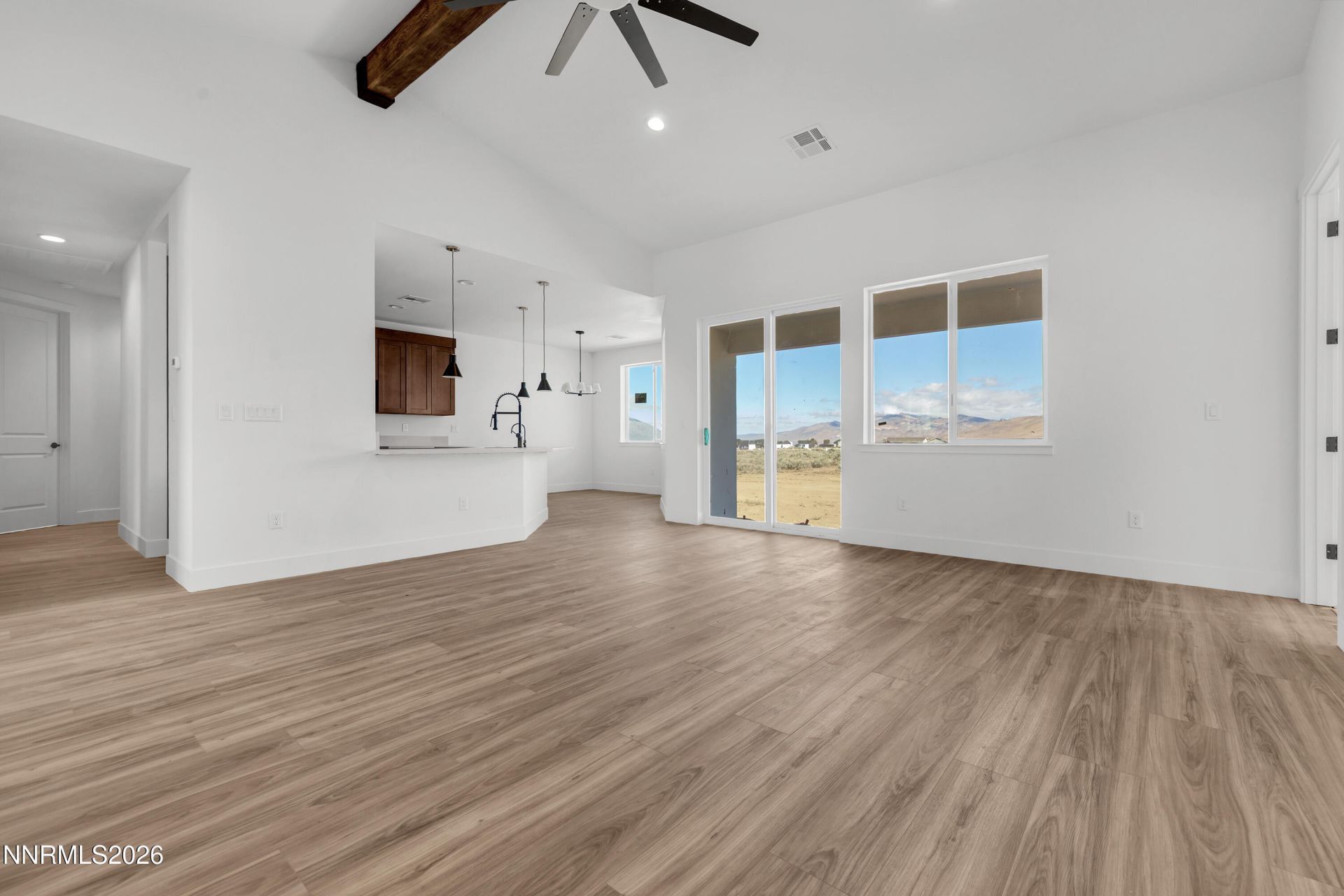 New Construction home on 5.01 Acres with NO HOA. Enjoy the Palomino Valley lifestyle with outstanding daytime views of mountains and valley with nighttime views of amazing starlit skies. This home features a split plan with spacious and beautiful primary suite with dual walk-in closets, dual sinks, private toilet, walk-in shower, free-standing tub, ceiling fan, and direct access to the covered patio. The second and third bedroom with substantial closet space share a full bath on the opposite end of the home. The kitchen has beautiful upgraded tall cabinets with quiet close hinges and drawers, stainless appliances, large contemporary stainless sink and black sprayer faucet. Additional features include upgraded high capacity well pump, whole home water filtration/conditioning system, tankless water heater, reverse osmosis water filter in kitchen, laundry sink, covered patio, and room for additional buildings and RV Parking. Horses and other animals are welcome here. You are just minutes away from outdoor activities at Pyramid Lake, Moon Rocks, and riding, hiking, etc. Shopping, groceries, restaurants, car wash/services, pharmacy, emergency care, and schools are within 25 minutes drive time. Washoe County Schools bus service is available to and from public schools.