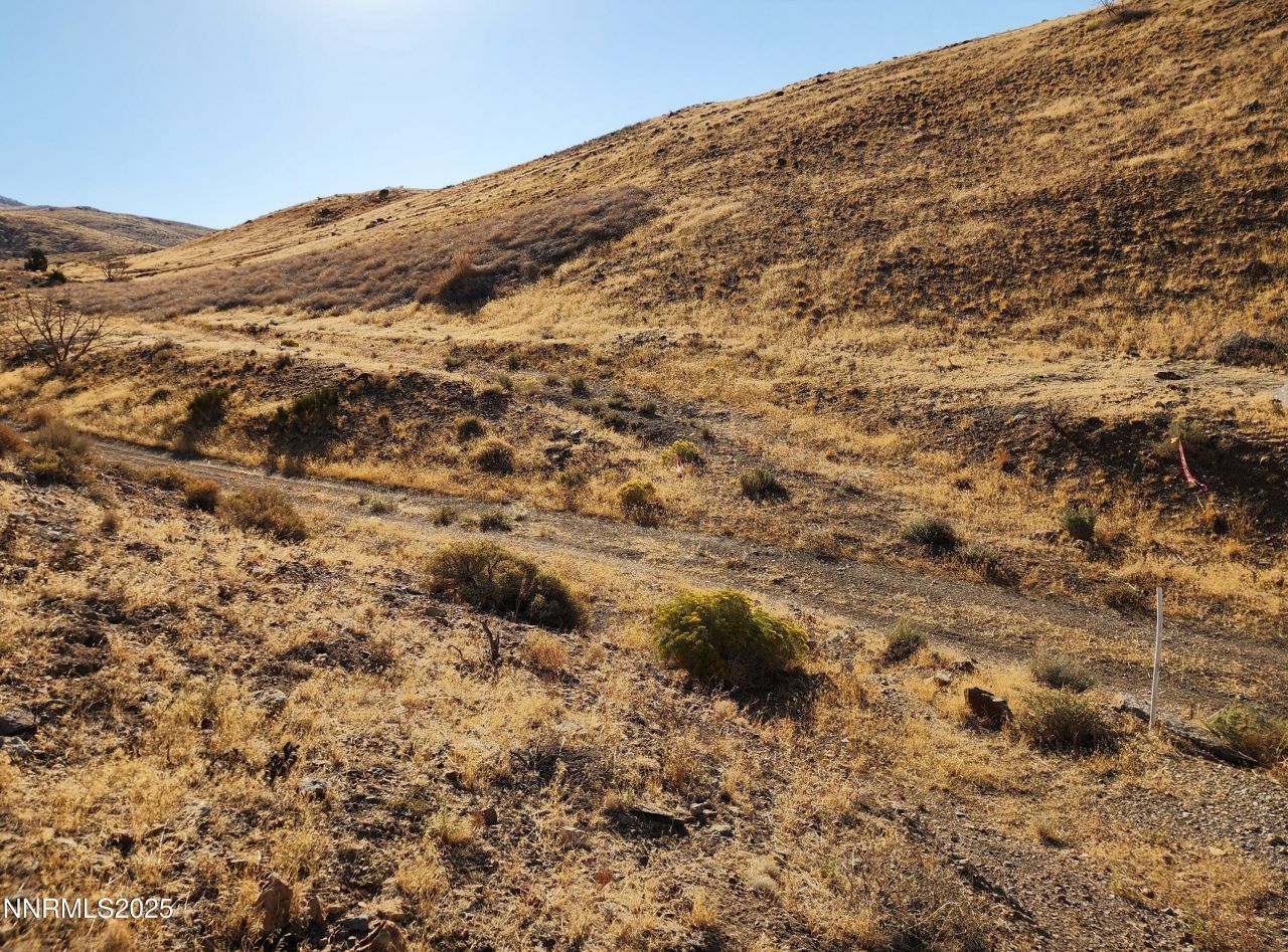 Fantastic view from the top of hill overlooking Palomino Valley. Close to the highway; yet miles above and away from it all. Unique setting gives the best southern exposure hilltop view without teeth rattling run up rocky roads. Odd shape parcel--check it out on map below. Picture with moon is view to the Northeast. Reeaally Nice!! Take 445 N to Whiskey Springs, go right to Grass Valley, go left to Wayside, go right on Wayside to Stirrup--follow Stirrup up past my sign into Canyon (pink and red survey tape) staying right at all Y's to the top of the hill. Property is bigger than you think.